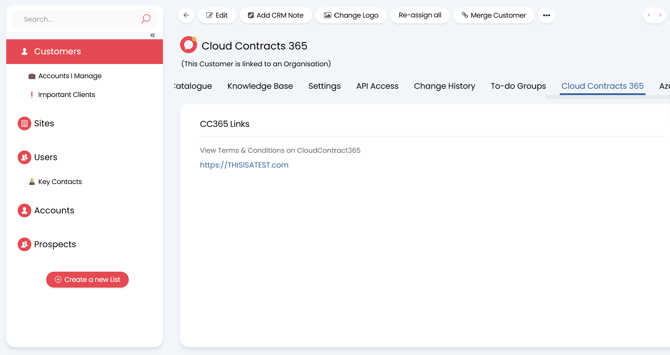 - The URL will now be added to the client record in HaloPSA. You can view it on the 'Cloud Contracts 365' tab: